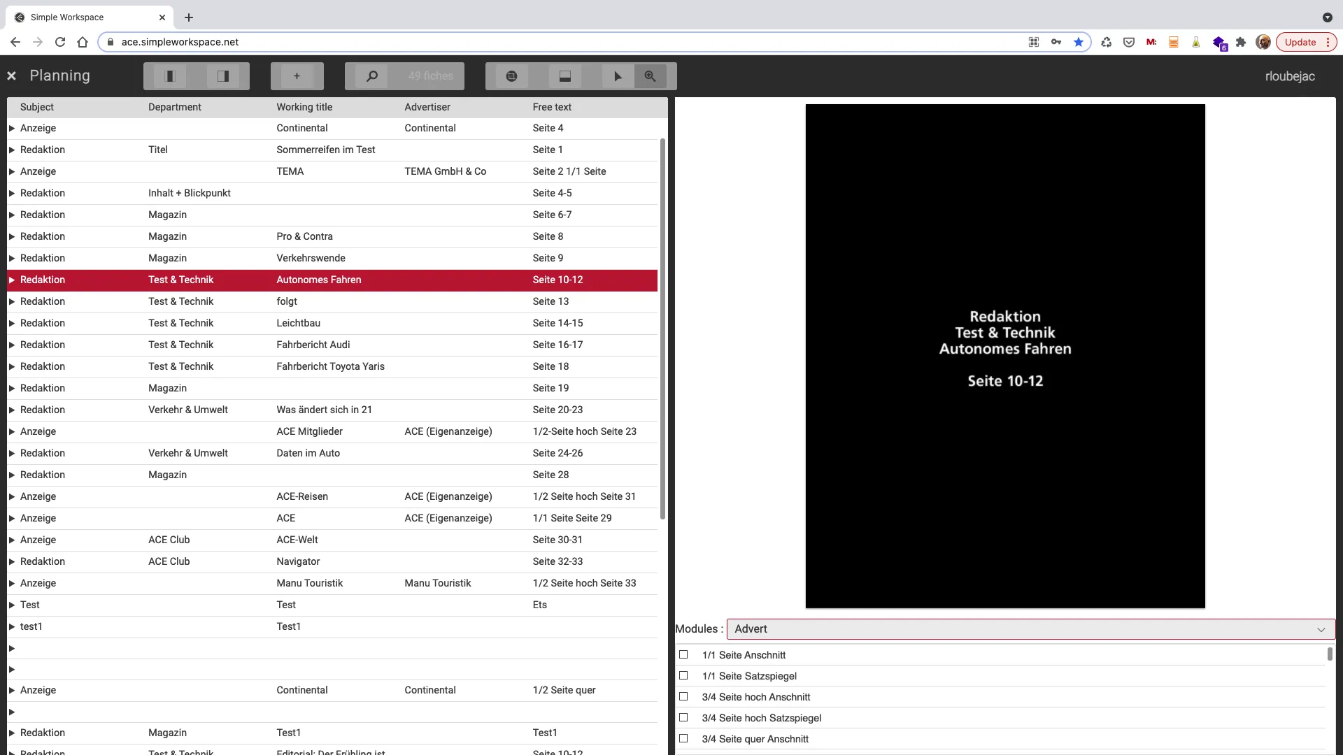 Une quinzaine d’utilisateurs utilisent Simple Workspace pour construire le chemin de fer des parutions du magazine.