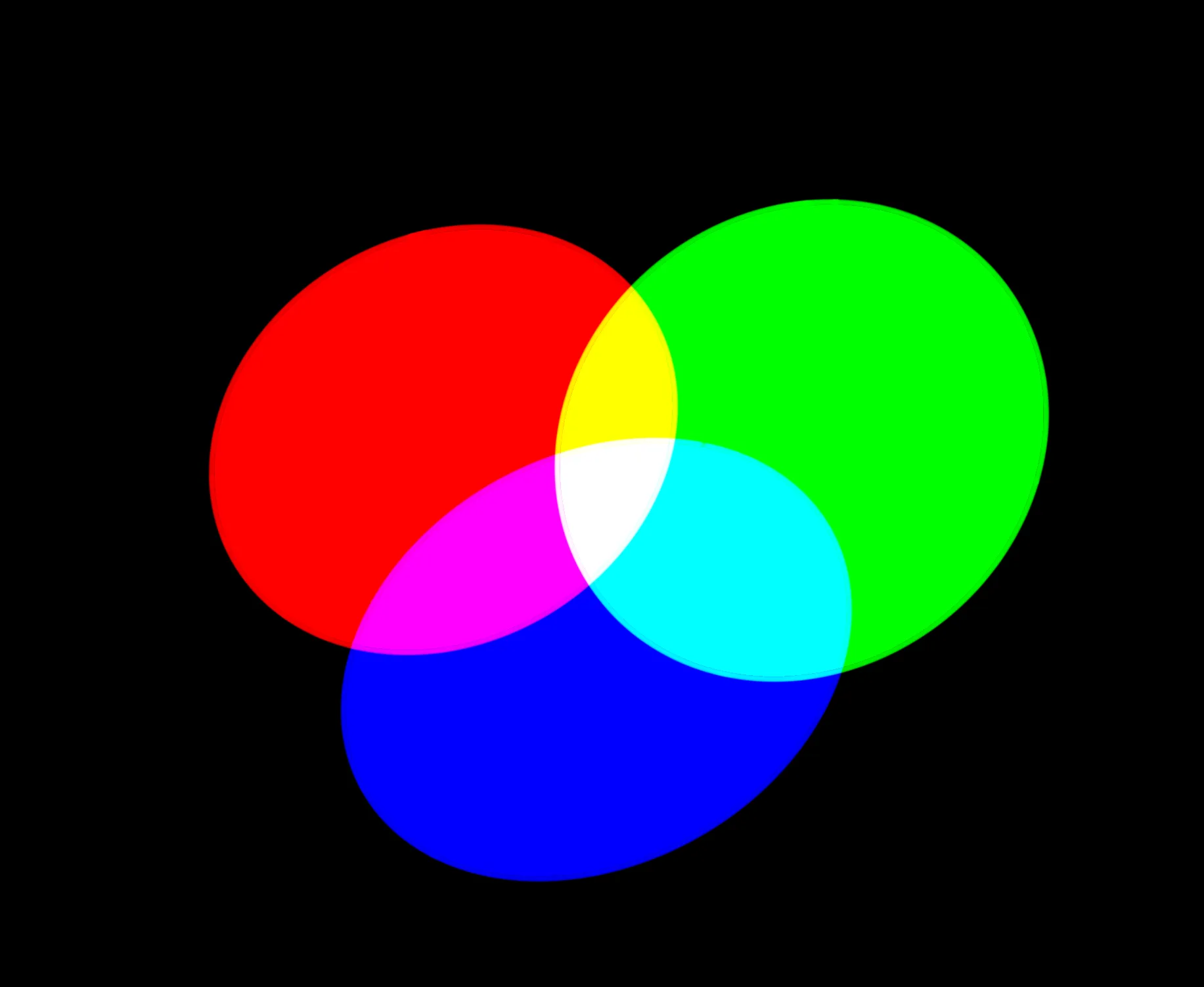 Dans le cas des écrans, on parlera de synthèse additive : quand il est éteint, il est noir… Pour obtenir du blanc, on ajoute les trois composantes (rouge, vert et bleu soit RVB).
