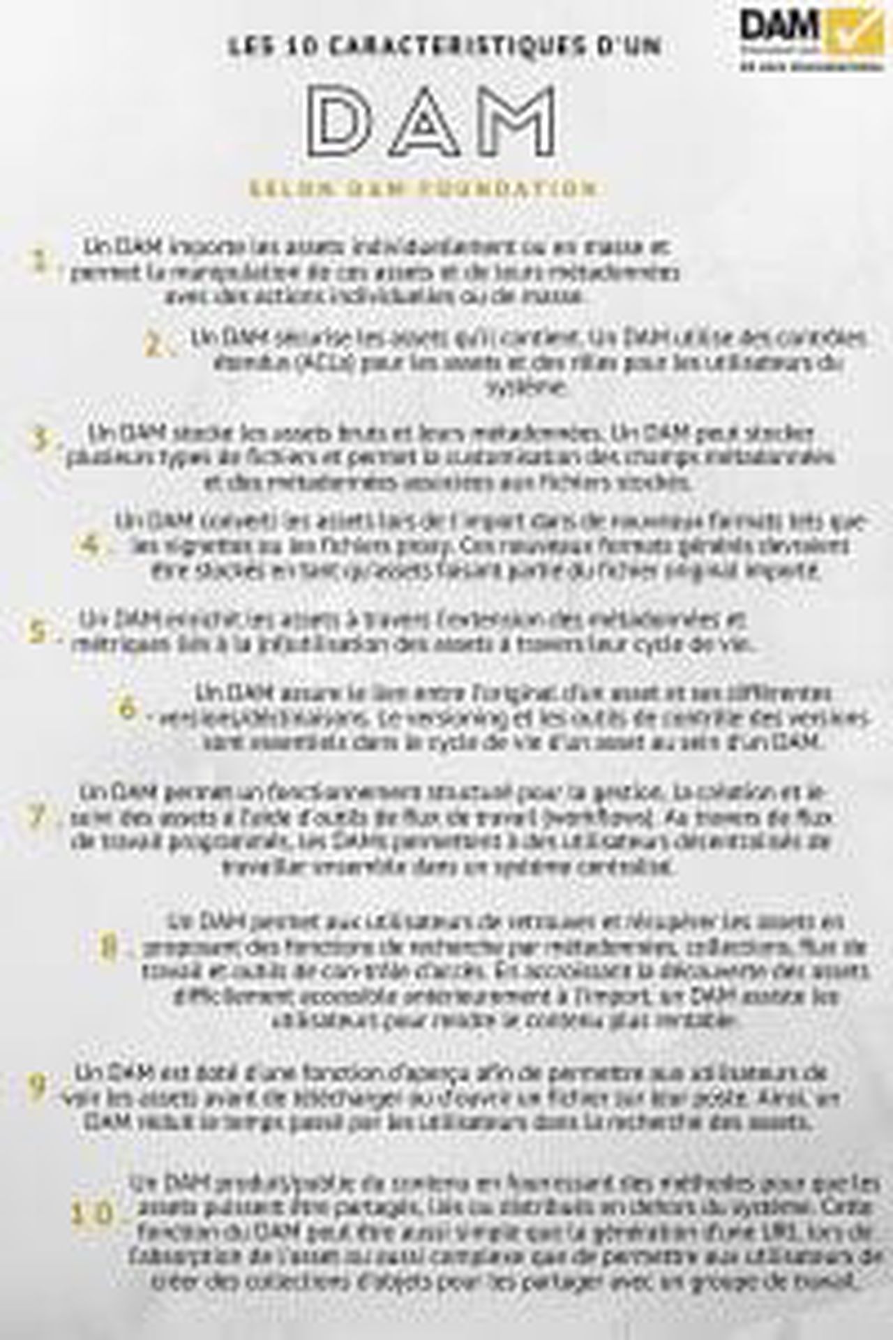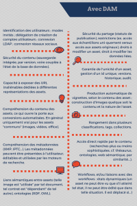 Fonctionnalités d’un DAM polyvalent La façon dont un DAM met l’ensemble de ses ressources à disposition des consommateurs (utilisateurs ou programmes) revêt beaucoup d’importance, selon la nature des … Lire la suite… (Article Chez J2S du 4/9/2015)