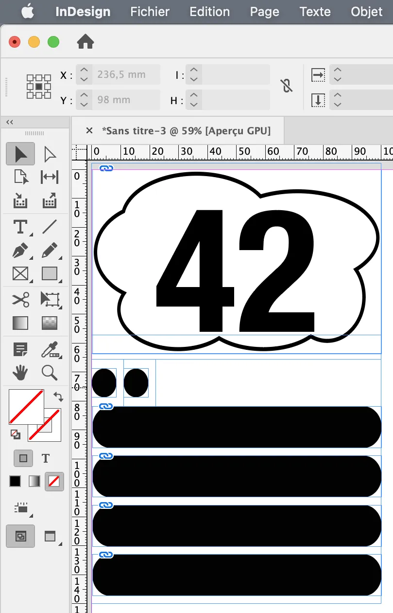 Les réserves marquées en rouge par InDesign sont celles auxquelles un libellé a été associé 3. C’est ce nom qui permet d’identifier les réserves. Quand une action du module — le plan — aura besoin d’un bloc de la charte, ce nom sera employé pour l’identifier. Le but est ici de nommer tous les blocs dont j’aurai besoin dans le module.