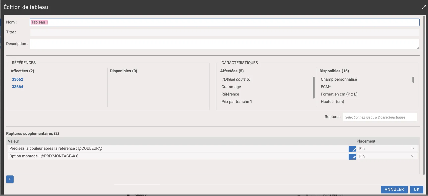 - L’application Simple MOM conçue pour gérer les fiches produits s’enrichit avec « la gestion de l’offre ». Vous dynamisez la mise en page des tableaux à partir des données produits, en choisissant les attributs et les critères à mettre en avant. Les tableaux croisés deviennent un jeu d’enfants. Ainsi vous scénarisez vos offres produits en fonction de vos différents supports de publication.
