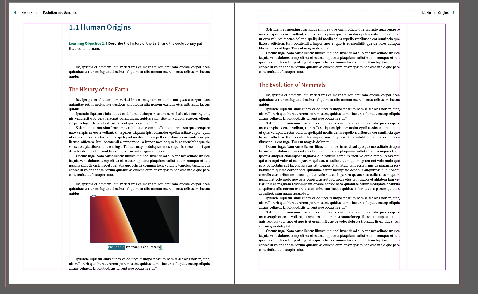 , génération des fichiers XML, mise en page dans InDesign, retouche des illustrations, etc. Une fois le BAT du livre papier signé, l’ePub était généré à partir des fichiers XML et le PDF interactif à partir d’InDesign.