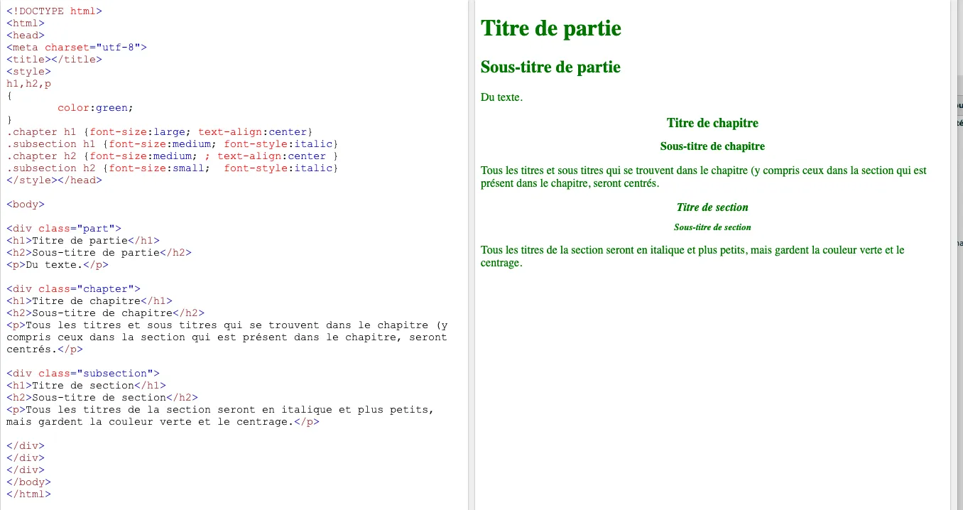 pour Simple Workspace). Cela permet une rigueur et une harmonisation dans la mise en pages 1 . En effet, tous les éléments de même type auront toujours la même mise en valeur. Par exemple, dès lors que dans le fichier XML on a un élément « auteur » on peut dire qu’il est en italique et ferré à droite. Là, vous vous dites probablement que c’est exactement la même chose lorsqu’on utilise des styles, et vous avez parfaitement raison. Toutefois, le XML permet également une contextualisation : on peut spécifier, par exemple, que les éléments « auteur » qui se trouvent dans un chapitre auront un corps (une taille de caractères) plus grand que ceux qui se trouvent dans les extraits. Il faut alors un retour à la ligne s’ils sont suivis d’une adresse, mais surtout pas lorsque l’élément suivant est un titre d’ouvrage. Ces logiciels permettent de réaliser des réglages encore plus fins, même s’ils sont proches d’une mécanique similaire à celui de la contextualisation en HTML/CSS (voir l’image d’exemple de la contextualisation en HTML/CSS).