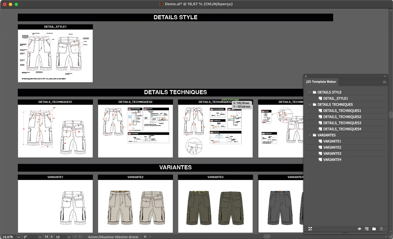 J2STemplateMaker is a time-saving tool. The integration with Adobe Illustrator makes the use very intuitive and in the same environment. Adding an artboard with predefined names in a section is very simple. This way we work with lighter files that help us reduce the weight on our internal servers. They are also faster to open and save. Another advantage: I can reorder my sections and artboards using the J2STemplateMaker palette… one click and the document layout is automatically updated while respecting our business settings. What a time saver!